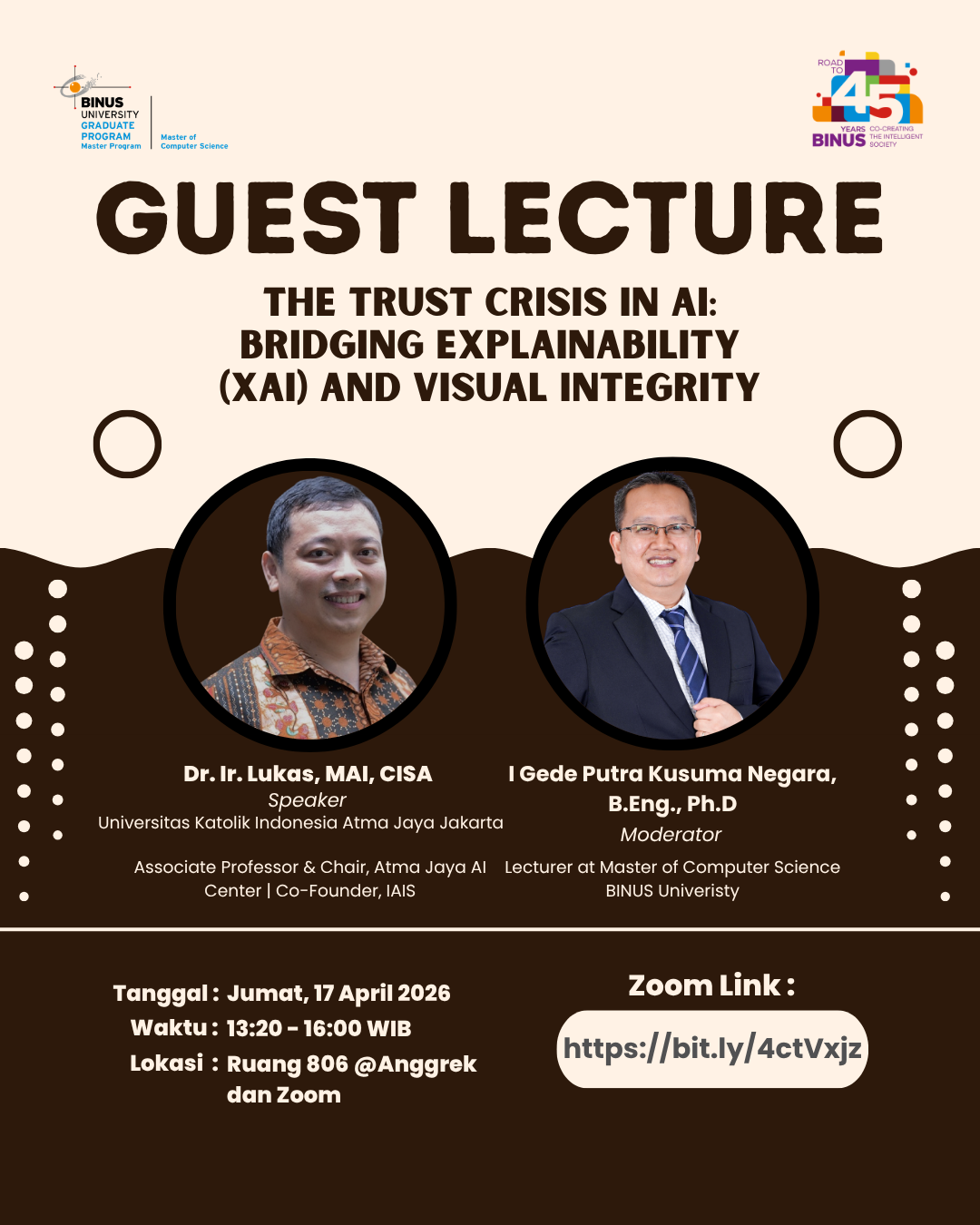 Lulusan program MTI BINUS akan memperoleh gelar Master of Computer Science (M.Kom).