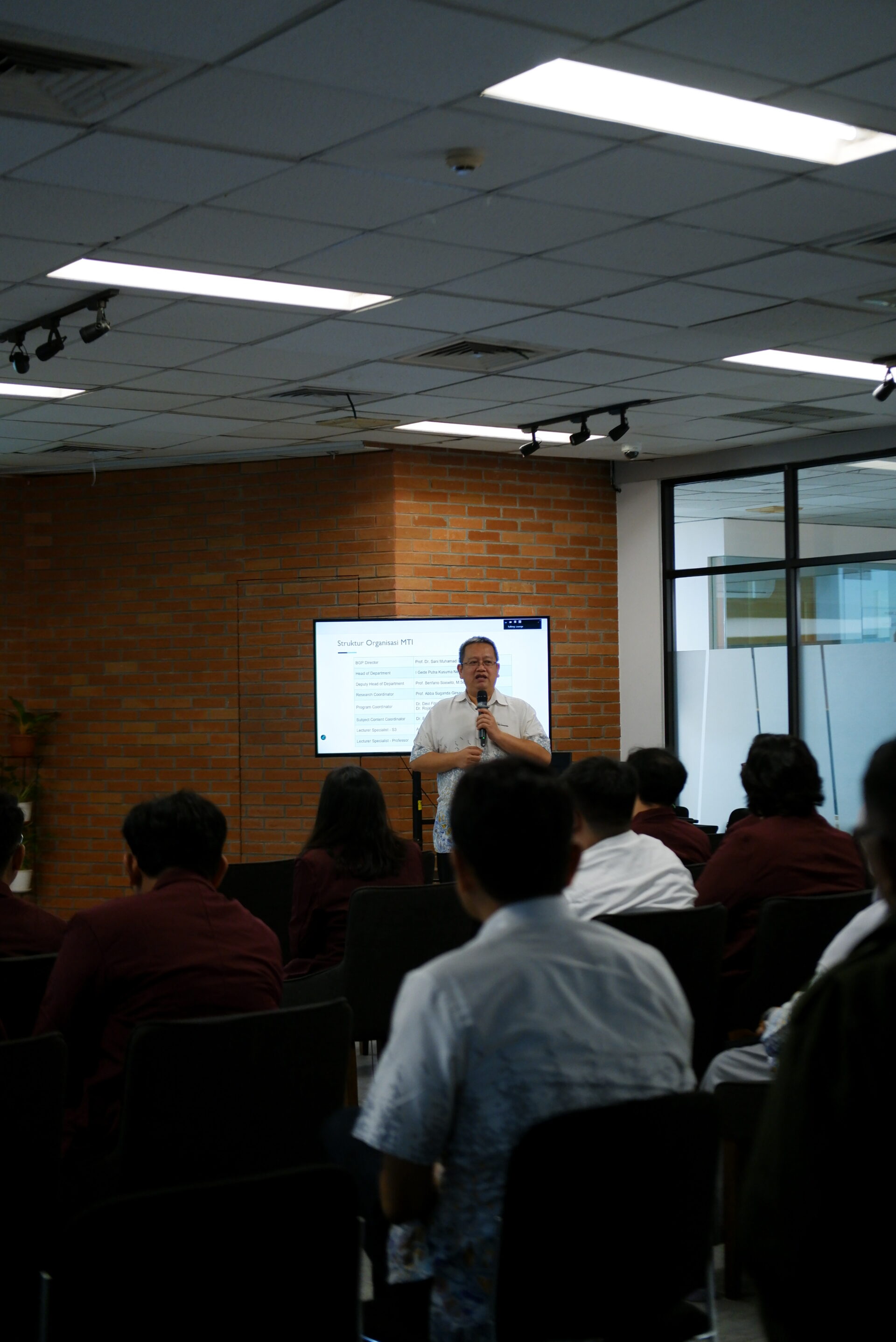 Pada sesi Jurusan MTI. Bapak I Gede Putra Kusuma Negara, B.Eng., PhD. selaku Head of Department dari MTI memberikan sambutan kepada para mahasiswa yang telah memilih jurusan MTI Binus Univeristy sebagai pendidikan S2-nya. Beliau juga memperkenalkan para dosen-dosen dari MTI. Inii merupakan sesi pengenalan sistem pembelajaraan yang akan digunakan pada 1,5 tahun kedepan di Binus Graduate Program. Ditutup dengan tanya jawab agar mahasiswa bisa memastikan hal yang ingin mereka tahu terkait program yang mereka sudah pilih.