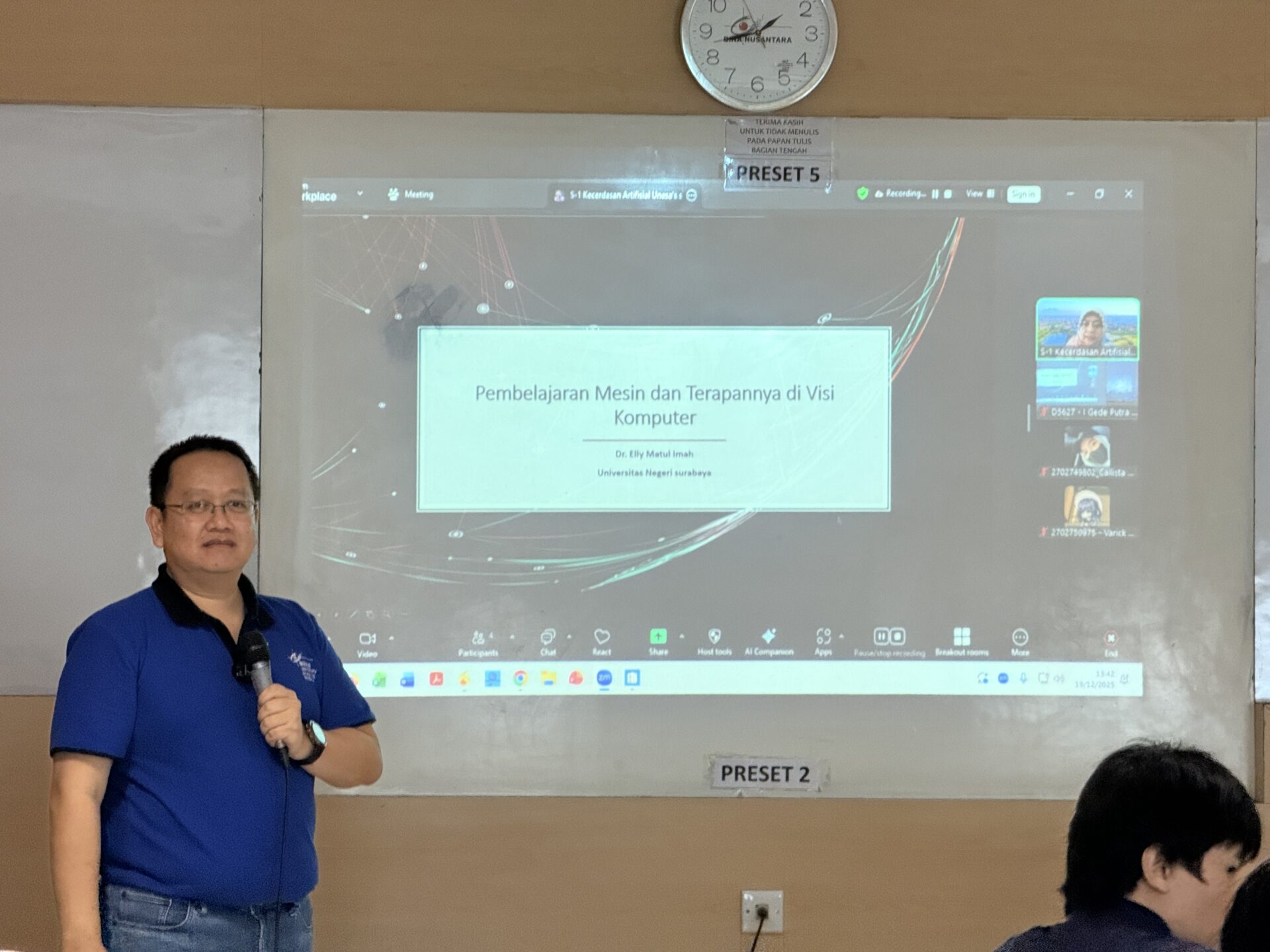 Kelas kedua merupakan pembahasaan terkait “Machine Learning dan Data Kesehatan: Peluang, Tantangan, dan Implementasi Nyata” yang dibawakan oleh Dr. Elly Matul Imah, M.Kom. Kelas ini diramai oleh para mahasiswa yang hadir ditempat untuk menghadiri guest lecture yang sangat menarik. Bu Elly juga memberi kesempatan kepada mahasiswa untuk bertanya kepada beliau terkait topik machine learning pada hari ini.