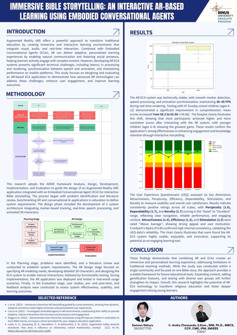 Augmented Reality (AR) offers a powerful approach to transform traditional education by creating immersive and interactive learning environments that integrate visual, audio, and real-time interaction. Combined with Embodied Conversational Agents (ECAs), AR can deliver adaptive, personalized learning experiences by enabling natural communication and fostering social presence, helping learners actively engage with complex content. However, developing AR-ECA systems presents significant technical challenges, including latency in processing and rendering, synchronization between speech and animation, and maintaining performance on mobile platforms. This study focuses on designing and evaluating an AR-based ECA application to demonstrate how advanced AR technologies can address these challenges, enhance user engagement, and improve learning outcomes.